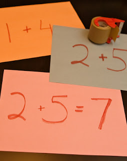 - Before you start the game, write a complete math fact in large type on one side of a sheet of typing paper. If your child is struggling with early math facts, start with low numbers like 1+2=3. By second grade, however, most kids are working with number facts closer to ten, such as 9+8=17; or with subtraction. Wherever you start, write one math equation on one side of each paper, such as 6+6=12; and write just the question (such as 6+6) on the other side. Make at least 20 facts, and then mix them all up.